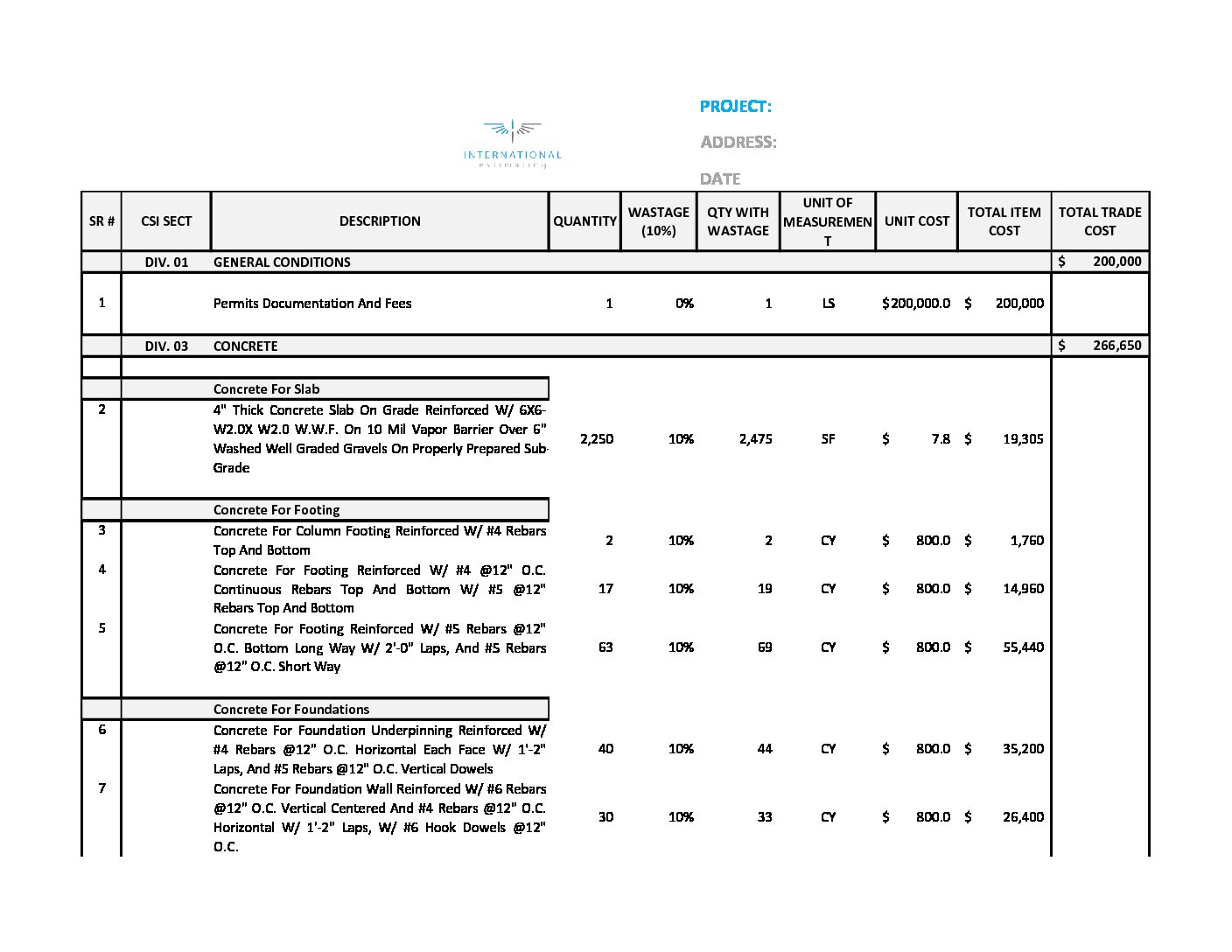 Estimate - Concrete
